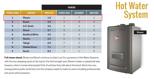 Green Builder杂志“2020年品牌指数”榜单新鲜出炉,全球最大的热水器制造商之一瑞美热水器继续“榜上有名”,斩获“第一”,从一定程度上讲,瑞美得到了行业的广泛认可,这不仅表明了瑞美持久强大的技术创新实力和品牌生命力,更意味着瑞美正通过不断的技术成果输出引领行业发展。