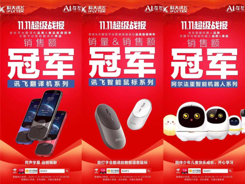 讯飞消费者产品斩获双十一京东、天猫、苏宁平台25项冠军
