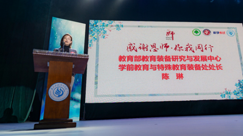 教育部教育装备研究与发展中心学前教育与特殊教育装备处处长陈琳在讲话中表示,希望通过感谢恩师活动,进一步提高社会各界对学前教育和特殊教育的重视,同时勉励幼教专业的学生本着知行合一的精神,修心养德,专注学业。