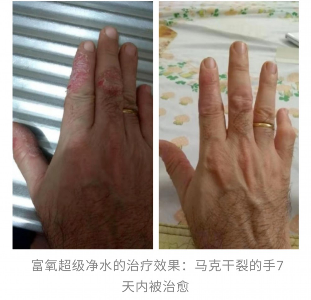 2020年,雷内里哈发明的富氧超级净水在临床、植物、生物上使用后,效果显著。蜜蜂喝了这个富氧净水后,产的蜂蜜更香甜,产量提升30%;农场下蛋的鸡,蛋期增长两个半月;樱桃长得又红又大。最最重要的是:马克手上皮肤多年干得暴皮,喝了七天富氧超级净水,好了!
