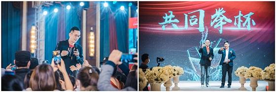 会议在一场灯光秀中进入晚宴环节,全场家人在恢弘的锣鼓音乐声中共同感受联盟的生生不息。