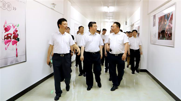 【黑龙江省委书记张庆伟(前排中)来青冈长林公司调研精准扶贫工作,铁骑力士董事长雷文勇(前排右)陪同介绍。铁骑力士集团供图】