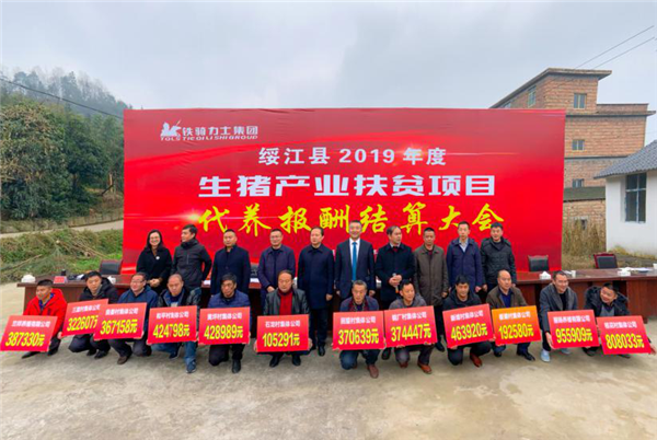 【2020年1月9日,铁骑力士集团在云南省绥江县板栗村举行2019年第二次生猪代养产业扶贫项目分红大会,共计分红资金520万元,全年累计分红资金743万元,直接带动建档贫困户190户脱贫。铁骑力士集团供图】