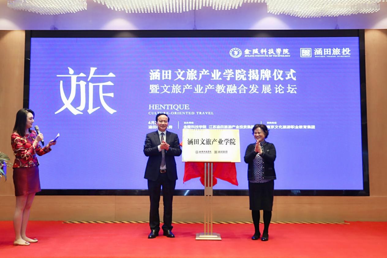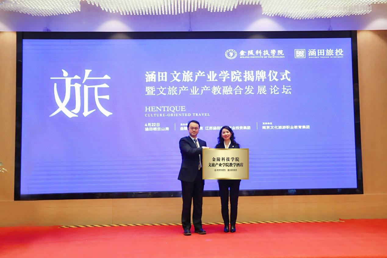 产教融合,助推文旅产业高质量发展,4月22日,涵田文旅产业学院揭牌仪式暨文旅产业产教融合发展论坛,在南京涵田栖云山房酒店召开,这是南京市文化旅游职业集团两家成员单位——金陵科技学院与江苏涵田旅游产业投资集团开展校企共建的重要成果。双方将以本次合作共建为基础,以服务地方文旅产业高质量发展为目标,在人才培养、行业交流、社会服务等多个领域携手共进、深度合作。省文旅厅、市教育局、市文旅局等相关单位代表出席了本次活动。