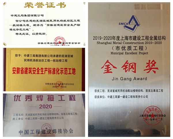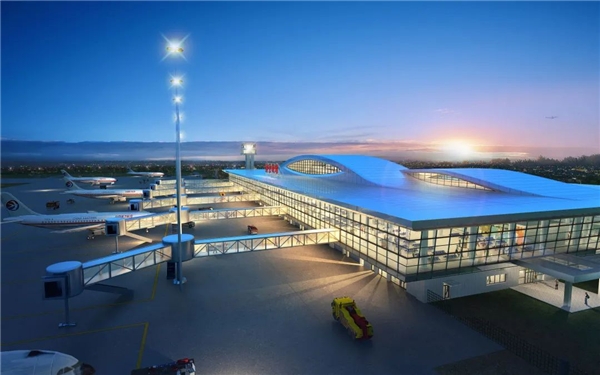 总建筑面积3.6万平方米,塔台工程玻璃幕墙安装高度达37米且为斜面玻璃幕墙,玻璃单片质量重,屋面造型以“芜彩斑斓·宣墨流韵”为主题将皖南水墨山水气质与机场现代科技感相结合彰显人文特质,建设人文机场。