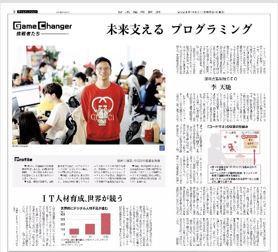 编程猫给中国编程教育带来了巨大进步,编程猫创始人兼CEO李天驰非常荣幸接受《日本经济新闻》的采访,成为中国编程教育成功的典范,为日本分享中国编程教育的经验。
