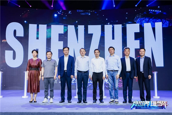 (从左到右依次为:深圳广播电影电视集团党组副书记、总经理尚博英,腾讯游戏副总裁、腾讯互动娱乐英雄联盟中国总负责人、腾竞体育董事兼法人黄凌冬,深圳市文化广电旅游体育局党组书记、局长曾相莱,中共深圳市委常委、宣传部部长王强,中共深圳市委宣传部副部长、市委网信办主任王楚宏,拳头游戏副总裁、拳头游戏中国负责人林松,深圳市龙岗区委副书记孙仲勇,深圳广播电影电视集团党组副书记、总编辑刘璋飚)
