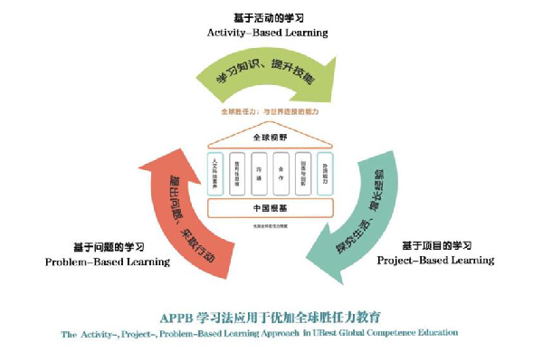 全球胜任力是21世纪人才素养的重要指标,是教育界对联合国提出的可持续发展议题的回应。世界多国已在教育体系中纳入了相关内容,我国教育界的有识之士们也早已意识到了其重要性,2018年清华大学率先在公立院校成立全球胜任力发展中心,同年新航道也成立了全球胜任力研究中心,并于2019年11月发布 “新航道全球胜任力模型” 。该模型以全球视野为顶,中国根基为底,六大核心素养为支柱。在支柱中,两侧是作为硬能力的人文科技素养与外语能力,中间是作为软实力的国际人才核心素养 4C,即沟通能力、合作能力、批判性思维、创造与创新。想要培养青少年的全球胜任力,传统的教学方式亟需变革。经过研究与实践,优加青少英语推出APPB学习法,这是一种以学习者为中心,基于活动、项目、问题的学习法(The Activity-, Project-, Problem-Based Learning Approach),用以解决全球胜任力的培养方法问题。