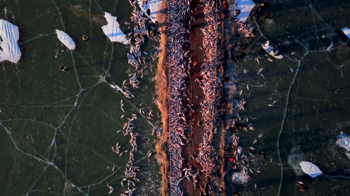 鱼儿属于江河,它能游到江水深处感知河水的重量与质量,鱼的体质依赖于河流的水质。鸟飞鱼跃的松花江,从源头长白山天池顺流而下,直至松花江在三江口汇入黒龙江;从大兴安地区的嫩江源头南瓮河,到松花江与嫩江交汇处的吉林松原,人们身处绿水青山,悉心守护这赖以生存的家园,张网捕鱼,千古如斯。