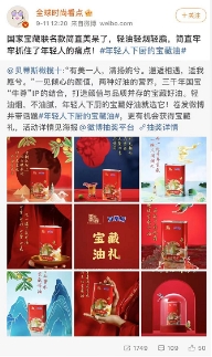 颜值当道,国潮来袭!传统文化的深度回归,使得国风元素在消费者心中打下深刻烙印,尤其是年轻一代。近日,贝蒂斯橄榄+《国家宝藏》“牛尊”联名款掀起国风热浪,其定制话题#年轻人下厨的宝藏油#登上微博热搜,阅读量近2000万,吸引近万人参与讨论,在国家宝藏IP的“大本营”B站等社交平台亦引起热议。