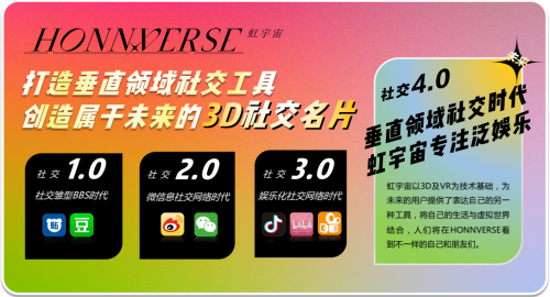 众所周知,每一代社交工具的出现,都会带来社交流量的变现。微博、微信以文字和图片的形式,成为大众获取信息的渠道,而网红和粉丝经济也应运而生,为很多的内容创作者带来了时代的红利。随着技术和网络的发展,为用户量身打造的短视频和直播形式的社交工具,成为人们茶余饭后的娱乐方式。从而也产生了流量价值的聚集地。Honnverse(虹宇宙)的出现,让社交工具从平面变得立体,再加上AR/VR等技术的发展和应用,文字、语音、图片、短视频等内容都可以匹配相应的虚拟应用场景,使得社交更接近现实。Honnverse(虹宇宙)虹最大的优势和亮点在于,用户可以根据自己的喜好创建自己的3D社交场景。就像“我的世界”那款沙盒游戏一样,激发用户自己的创造力和想象力,打造出属于自己的一片天地。据官方披露,虹宇宙计划将与全球红人IP合作,届时随着创作者和IP的大量入驻,虹宇宙也会打造出全新的3D虚拟世界的网红,并形成全新的粉丝经济的流量洼地。这对于希望获得粉丝经济带来红利的普通人来说,无疑是一次崭新的机会。