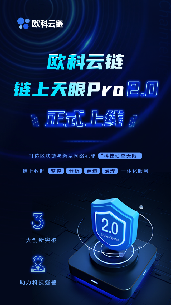 1月10日,“欧科云链链上天眼Pro2.0”正式上线,在第二个中国人民警察节来临之际,以“三大创新突破”献礼人民警察,助力打击区块链与新型网络犯罪。