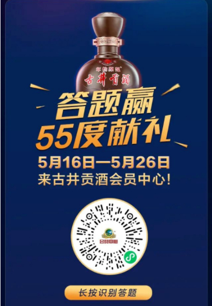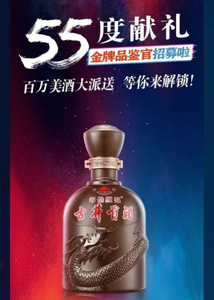 此外,为庆祝55度年份原浆·献礼版上市,古井贡酒推出两重好礼:一是在全网开展百万美酒试饮活动,活动将“招募”一大批“金牌品鉴官”推动55度年份原浆·献礼版品牌传播;二是5月16日-5月26日,在“问答挑战”中,第一次答题满分的“铁粉”即可有机会获得55度550ml献礼版一瓶。