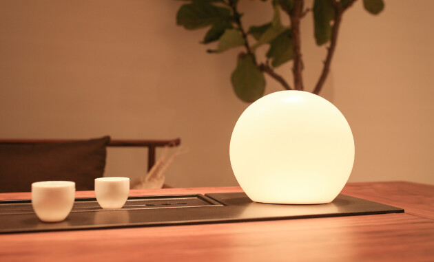 立达信「白石」桌灯是他另一个里程碑式的新鲜尝试。以玉瓷作为光的载体,整盏灯莹润无瑕、通透如玉,别具雅韵。