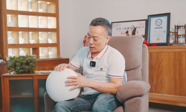 “烧制过程也困难重重,要透光好,胎体必须薄,考虑到成型率,胎体又要尽可能厚,为了达到一个平衡,需要一遍遍精益求精的推敲试验,太不容易了,大约花了半年时间,才成功烧制出第一个理想坯体。”