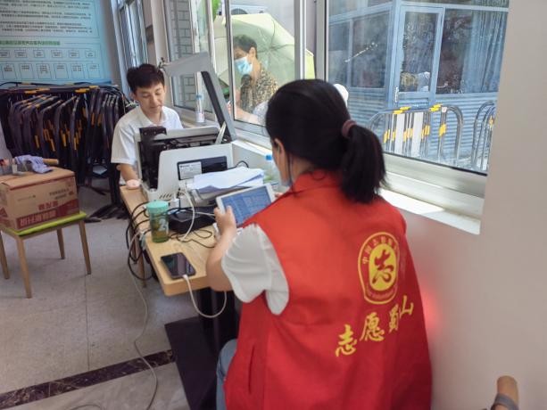 近段时间,黄山路社区康乐银龄志愿服务队也跟社工反映,不少中老年朋友咨询办理社保卡相关问题,原计划周三由康乐银龄志愿者陪同去银行办理的童老也在志愿者的搀扶下来到现场。