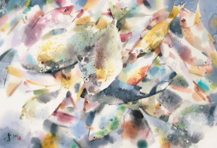 马来亚彩虹鱼 李庆 水彩画 70×101cm 2022年