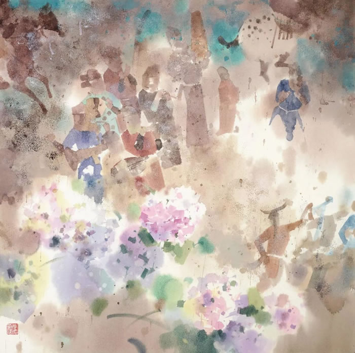华夏气象 李庆 水彩画 80×80cm 2022年