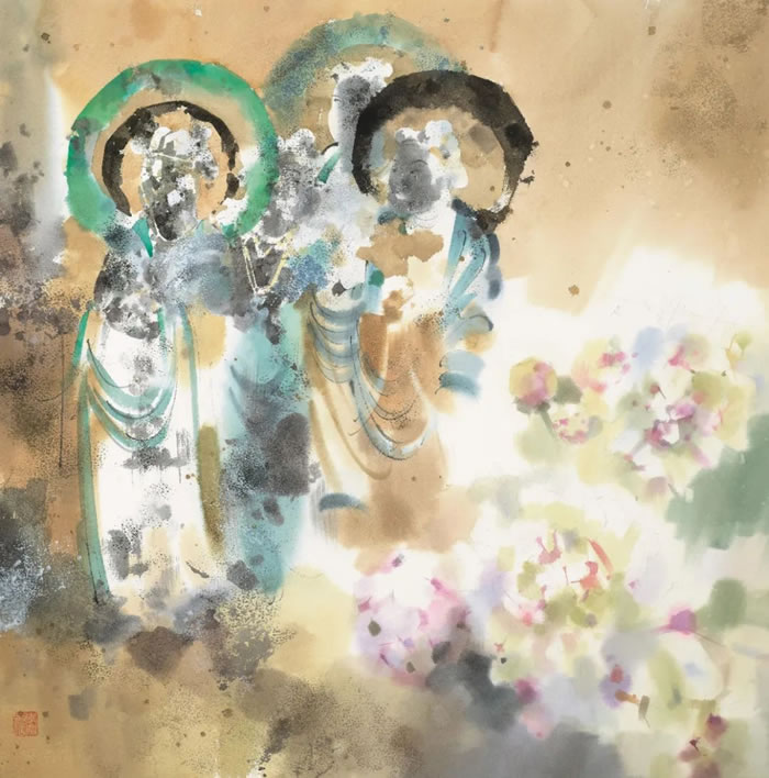 丝路回响 李庆 水彩画 80×80cm 2022年
