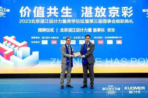 湛江设计力量总会监事长 / 广东奥丰装饰总经理李光熙为北京湛江设计力量监事长/北京宽堂云鼎设计 /创始人黄堂授牌