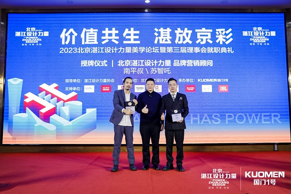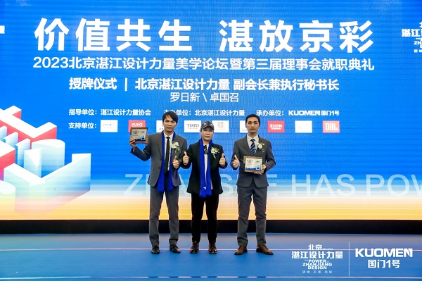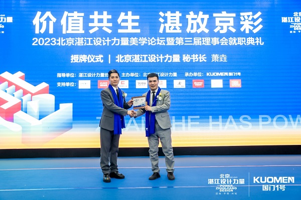 2023年11月19日,“价值共生 湛放京彩”北京湛江设计力量美学论坛暨第三届理事会就职典礼在国门1号全球家居总部基地举行,北京湛江设计力量会长田鸿基、执行会长余文桃、监事长黄堂,秘书长萧垚等成员接受授牌,宣告正式就职。湛江设计力量总会执行会长吴蛟、罗伟;秘书长陈德利、监事长李光熙;常务副会长兼广州会长罗郁、常务副会长谢丰明及来自湛江设计力量广州、深圳、佛山、东莞、珠海、海南、中山、云南、广西、湛江等地区的精英设计师与艺术家等200人出席活动。