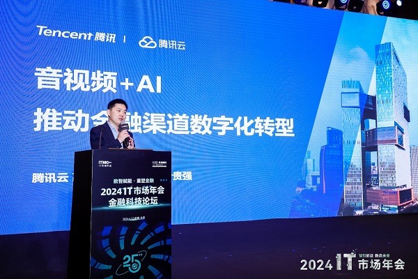 腾讯云高级解决方案专家叶贵强发表了以《音视频+AI 推动金融渠道数字化转型》为主题的精彩演讲,全面剖析了腾讯云音视频的全真银行解决方案,依托坚实的基础网络建设和完备的音视频PaaS产品矩阵,推出虚拟营业厅、远程银行、视频双录、数字人虚拟客服等创新应用,帮助银行实现数实融合。