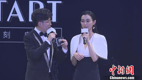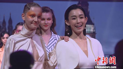 范玮琪以一身干练黑白装束亮相,与模特同台走秀表演。康玉湛摄