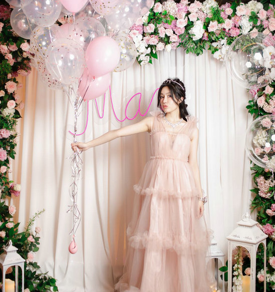 今日,汤晶媚生日会现场曝光,照片中,汤汤身穿粉红色轻纱礼服搭配独特奢华的珠宝饰品,站立在由气球和鲜花布置的梦幻氛围之中,甜美温柔,而以外滩风景为背景的照片则仿佛电视剧画报一般充满了故事性,让人“流连忘返”。