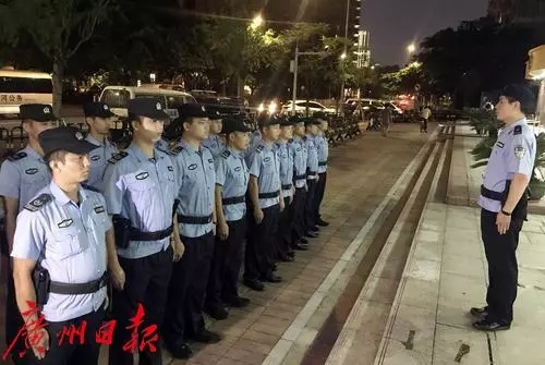 7月15日晚8时许,由公安和城管部门组成的联合执法队在猎德派出所前集结,然后前往珠江新城临江大道开展执法整治行动。