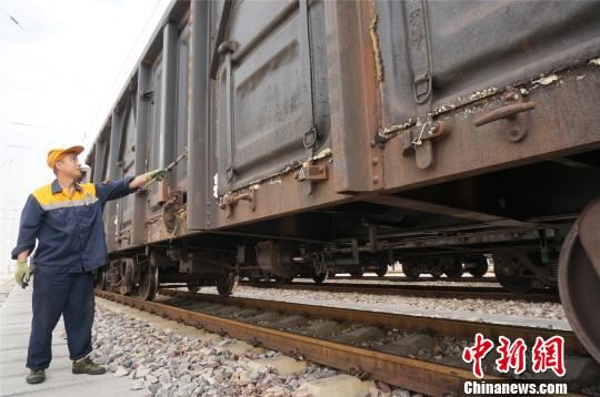 沿着列车车厢走,货检员每天都能走出一个马拉松的距离。韩章云 摄