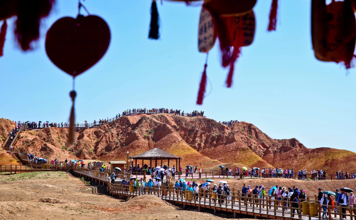 据甘肃张掖丹霞大景区管委会统计,截至9月5日上午9时,张掖丹霞大景区2019年接待境内外游客200万人次,同比增长10.83 %。其中七彩丹霞景区接待游客187.6万人次,同比增长10.66%;冰沟丹霞景区接待游客12.4万人次,同比增长 21.39%。游客接待量较上年提前15天突破200万人次。