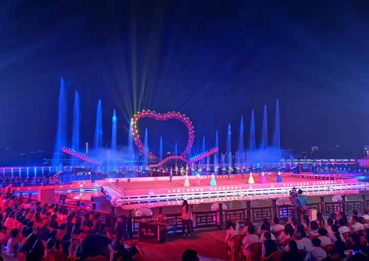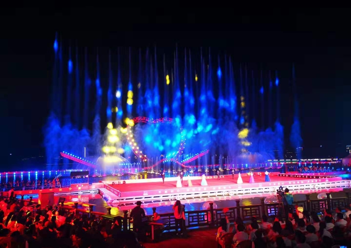 光与影的交汇、传统与现代的融合,记者了解到,与以往不同的是,本场晚会打破传统的舞台概念,表演区与观众区融为一体,综合运用音乐、舞蹈、情景表演、多媒体等舞台手段,结合阅海湾水上公园天然景物和水幕效果,绿色、天然和原生态贯穿其中,以体现金凤区各族人民共同生活在“同一片蓝天下,同一块土地上”的祖国大家园之中。晚会充分调动多种艺术手段,营造出情景交融,诗情画意的艺术场景,多层面、多视点地展示金凤区创新之城、品质之城、 生态之城、幸福之城的时代风貌。同时,晚会以大型文艺晚会表演形式和诗化的、大写意的创意和构思,铺洒叙写出自然、和谐、绚丽的音舞诗画,全面体现了金凤区人民奋力谱写“绿色、高端、和谐、宜居”新篇章取得的巨大成就,充分表达了全区上下“不忘初心、牢记使命”,踏上新征程、再创新辉煌的决心和信心。