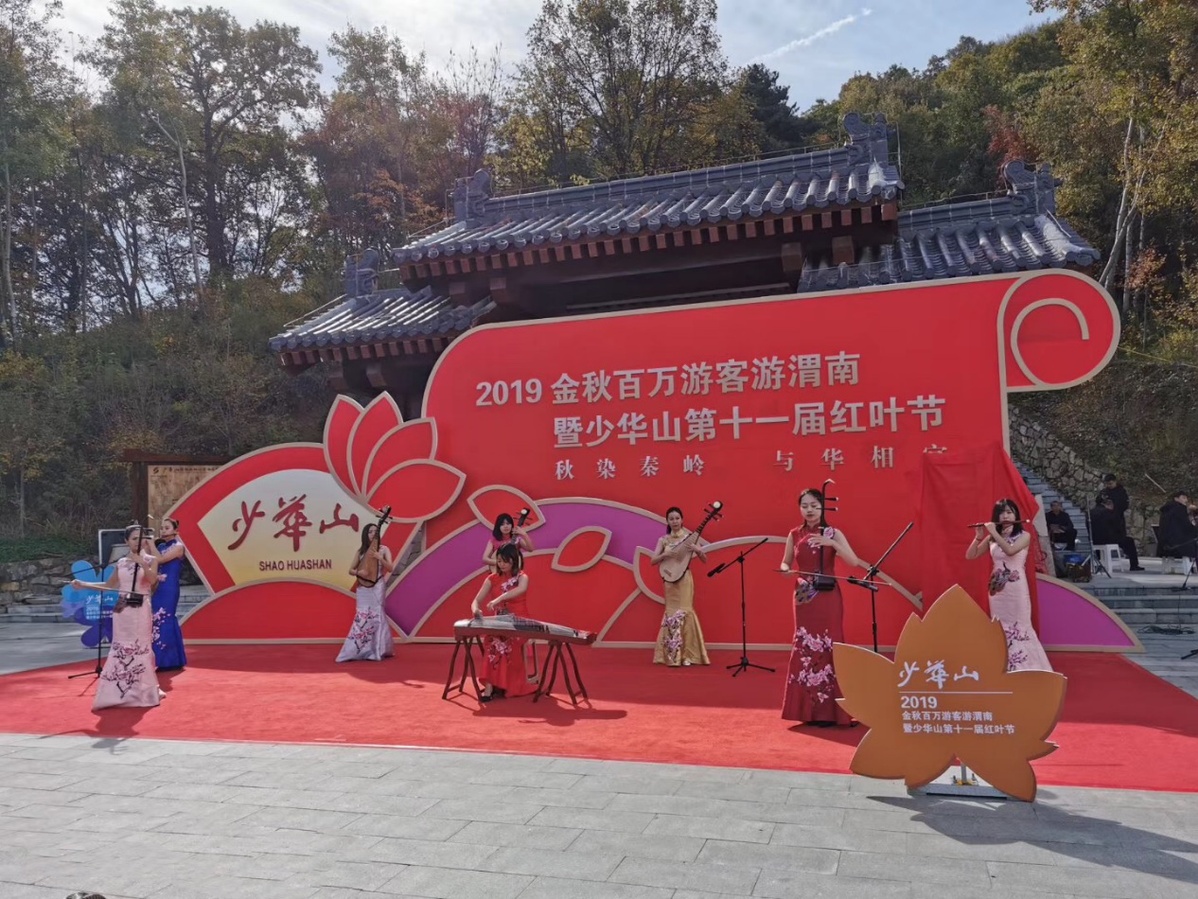 上午十点,来自西安音乐学院的传统民乐器大合奏,拉开了2019金秋百万游客游渭南暨少华山第十一届红叶节启动仪式的序幕。少华山景区管理委员会副主任李震致欢迎词,对到场来宾表示感谢。