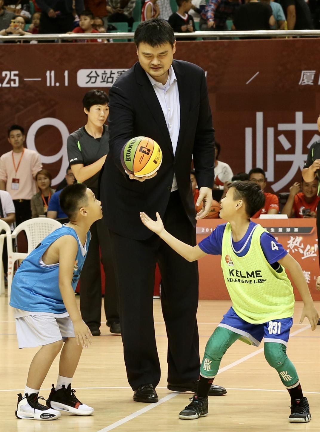 姚明为小篮球项目表演开球 中国日报记者 胡美东摄