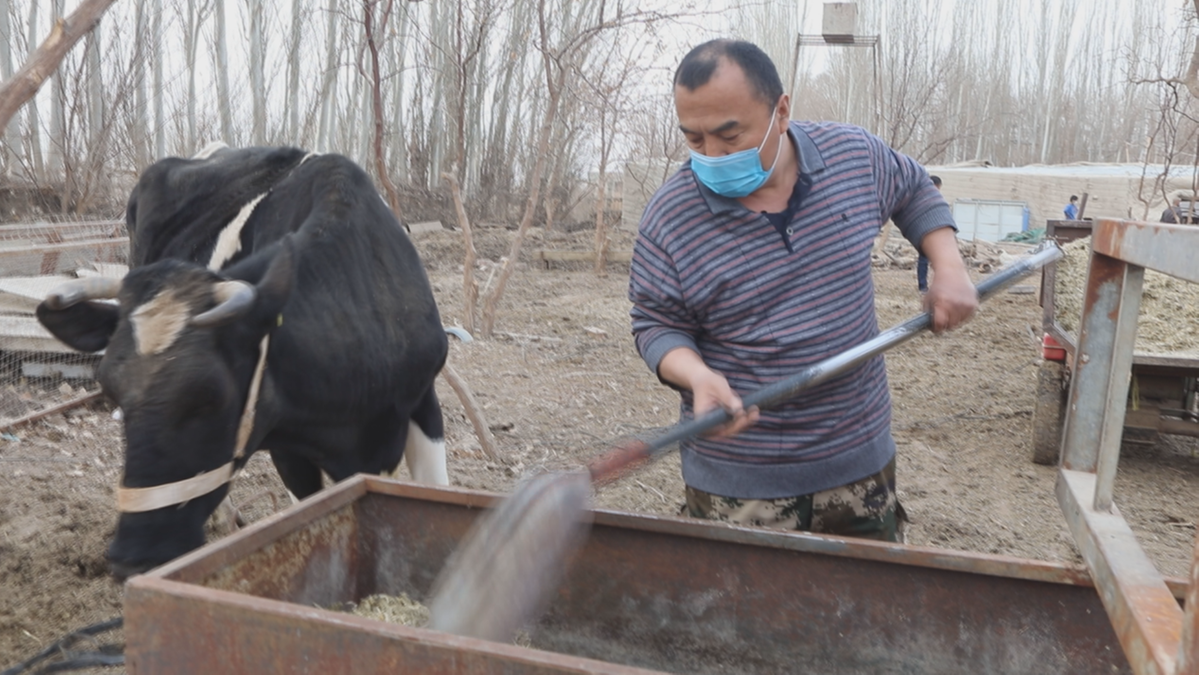 当记者来到新疆鄯善县辟展镇超力客农民专业合作社,看到几头小牛犊在圈舍里晒着太阳,十几头奶牛在枣园的枣树下吃着饲草料,工人不时将煮热的精料添加到食槽里。