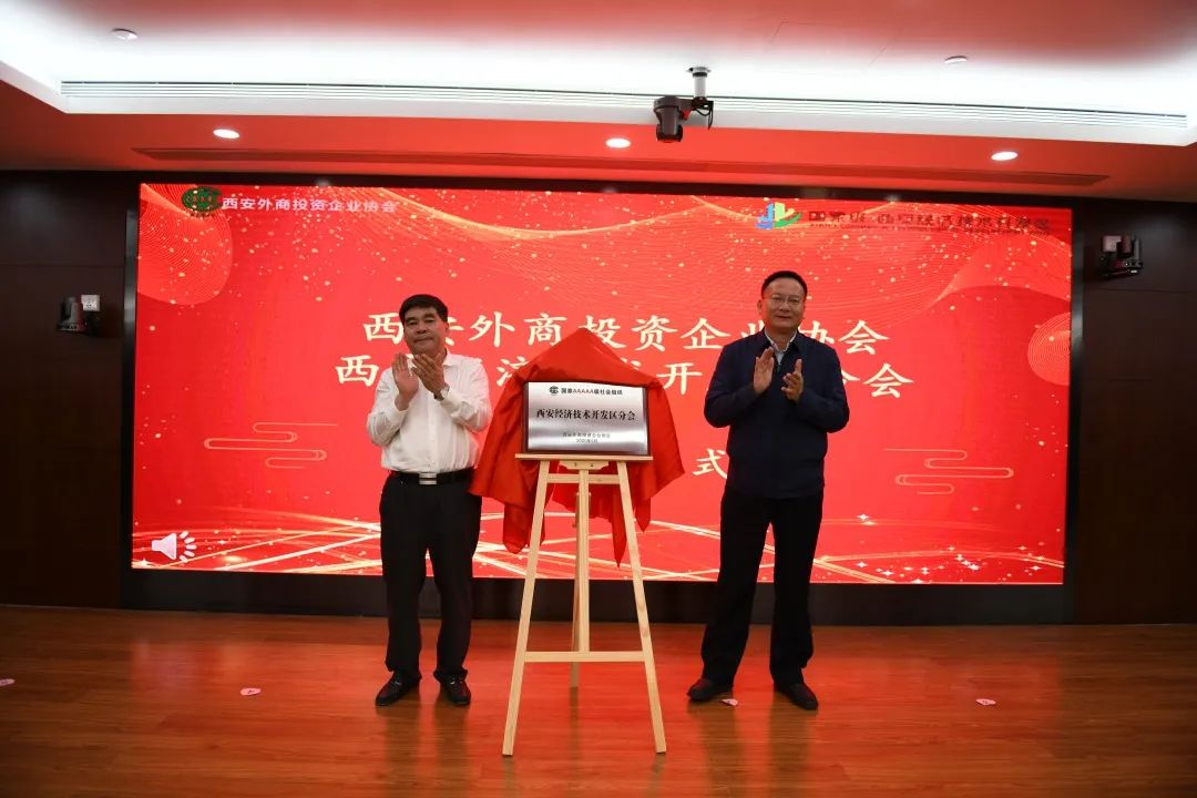 会上,钱虎威和李群刚为西安外商投资企业协会西安经济技术开发区分会揭牌。