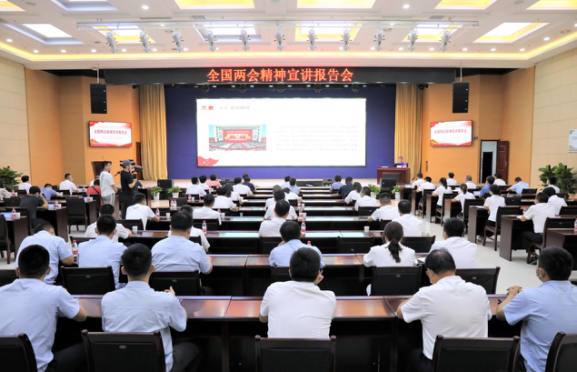 徐立平从全国“两会”的概况和特点、会议主要精神、陕西代表团在全国“两会”上的主要活动和工作情况,以及学习贯彻工作要求等方面,对全国“两会”精神作了生动鲜活的介绍、解读。徐立平还重点从新冠疫情防控、民法典立法等多个角度,深入传达了中央有关决策部署和大政方针,并向参会人员分享了会议召开细节故事,为基层干部工人学习宣传贯彻全国“两会”精神提供了重要指导。