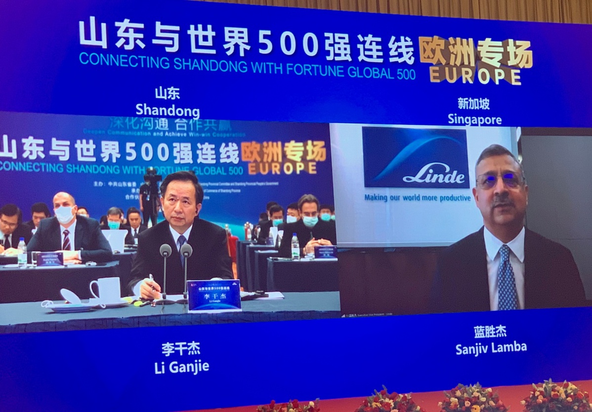 作为全球主要的工业气体业务供应商林德集团是在山东投资较多的世界500强之一,自2005年在山东投资第一个工厂以来,林德在山东省总投资额约为45亿人民币。在当天连线中,林德公司执行董事会成员、执行副总裁、亚太区首席执行官蓝胜杰(Sanjiv Lamba)对山东发展前景乐观,表示林德公司未来在山东计划投资10-13亿美元、约合70至90亿元人民币。同时,林德还将致力于将最先进的氢能技术和设备引入山东省,希望将林德在山东所有氢能相关资源整合一起,从而为整个山东提供综合性的氢能解决方案。