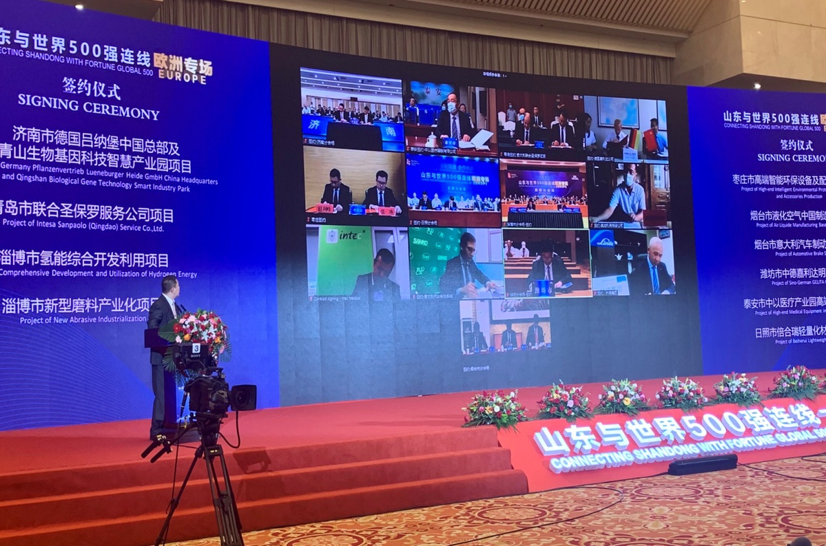 活动当天,济南、青岛、烟台、潍坊、济宁5市同时举办配套交流活动,组织企业与欧洲世界500强等跨国公司进行对接洽谈,并组织一批合作项目进行线上集中签约。