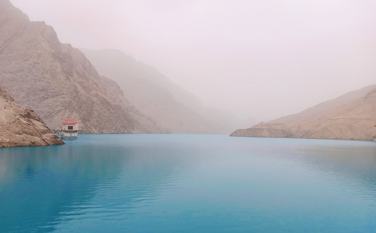 景区内的景色十分优美,尤其这个季节的湖水格外清冽,呈湛蓝色,水清浪静,波光粼粼,库区四周被干燥剥蚀的低山环绕,形成了“绿水荒山”的景色特点,为北京文联小分队的艺术家们带来了特有的创作灵感。