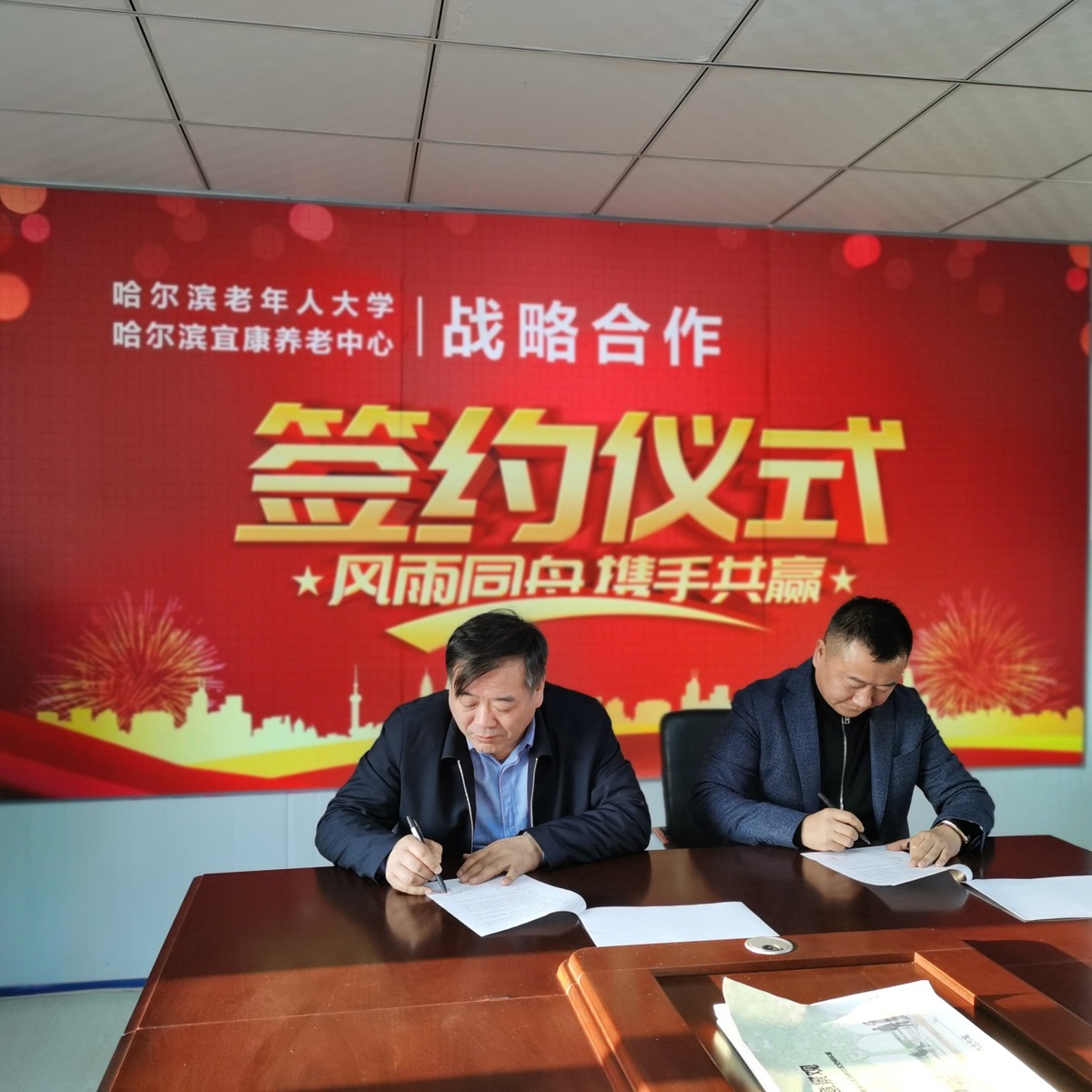 为了更好地满足老年人文化养老安度晚年的实际需求,充分贯彻落实国家老有所养,老有所乐,老有所学的为老服务方针,体现党和政府对老年人的关怀,今日,哈尔滨老年人大学与哈尔滨宜康养老中心共同签订战略合作协议,协议中双方达成共识,要充分发挥各自的资源优势,建立以养老机构为依托,以老年群体为服务对象,以老年教育为服务载体,以健康管理为基础保障的老年教育基地。