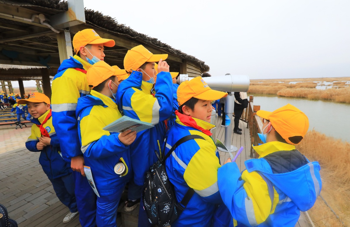 立冬的暖阳,温和中夹带丝丝凉意,经过景区研学导师在迎宾广场对研学团队进行简单分组及热身开营后,300余名小学生有序进入园区。研学活动中,沙水相伴、水鸟依依的自然景观、科普有趣的宁夏湿地博物馆、忆苦思甜的宁夏农垦博物馆、沿途精心准备的环保和鸟类知识有奖互动以及芦花剧场手工DIY等活动,让学生们收获满满,一颗颗求知的童心被逐渐点燃。