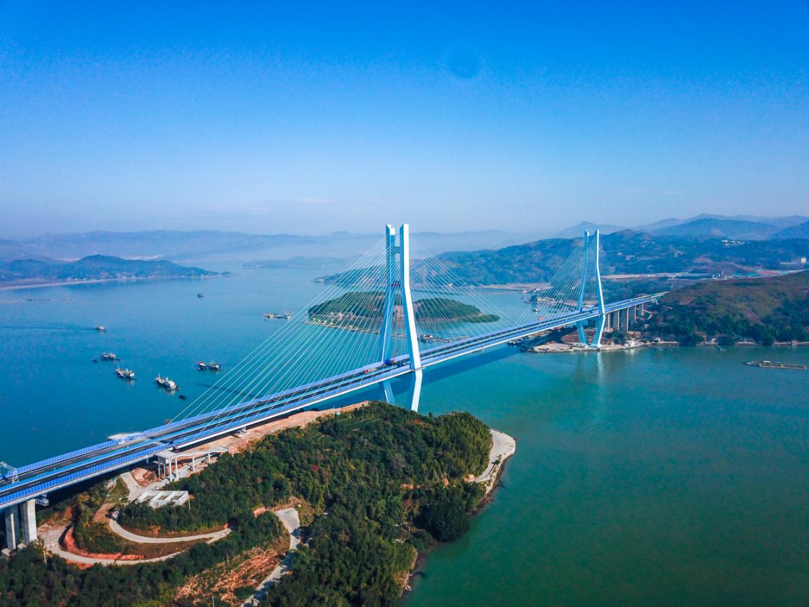 沙埕湾跨海公路通道工程起自福鼎市佳阳乡双华村,接在建的宁波至东莞国家高速公路浙江段,于竹澳跨越沙埕湾,止于店下镇洋中村,接已建成的沈阳至海口国家高速公路福鼎段。该项目线路全长约20.2公里,双向六车道,设计时速100公里,建成后对于缓解沈海高速闽浙段通行压力意义重大。
