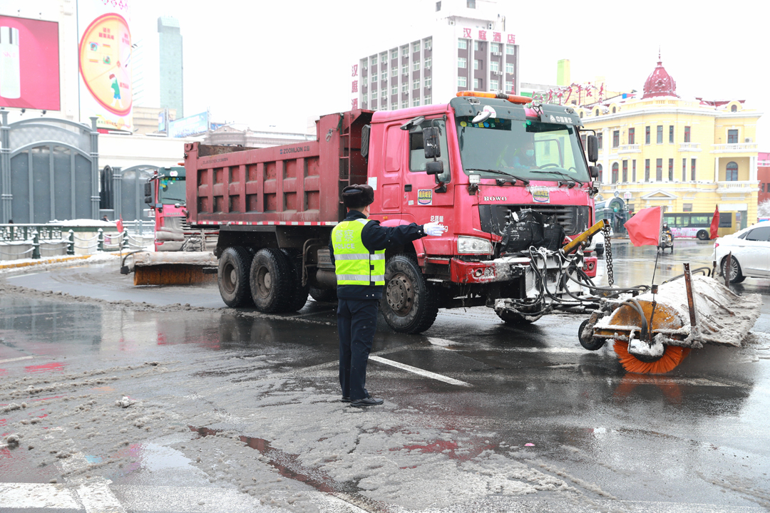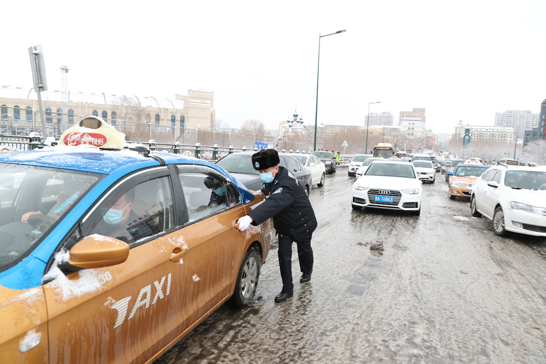 哈市交警根据气象预警抢前抓早,19日提前部署,20日18时启动气象灾害应急预案四级响应,与气象、环卫等部门快速对接,优先保障路面积雪积冰的清理和拉运,确保环卫工人作业安全;通过指挥中心视频监控、高德地图等多种渠道,及时掌握全市路况信息和交通态势,实时对市区各辖区大队进行指挥调度。期间,交警部门共设置执勤点位603处,预留事故处置组、机动警力及警保联动力量,重点强化对全市191处易积雪结冰路段、重点坡路的管控,通过岗位联动疏解、30公里对向巡逻管控等方式,实现各辖区、各岗位的无缝对接,及时排除道路安全隐患,确保了市区主干路通行秩序的顺畅。