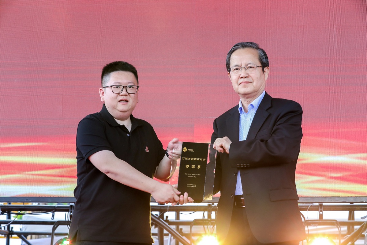 发布会以“浮梁茶 世界香”为主题。会上,刘登林主席代表万里茶道(国际)协作体上台授牌,授予浮梁茶为官方指定用茶,程龙董事长上台接牌。这是对浮梁茶的高度认可。