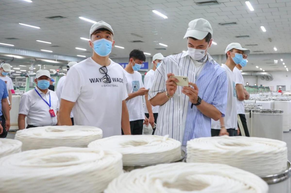 27日上午,曾令旭、阿不都沙拉木以及新疆广汇青年队走进图木舒克棉纺厂,用行动为新疆棉花“代言”。在棉纺厂里,全自动的生产机器正在运行,青年队员们对厂区偌大的规模感到惊讶,不过经介绍,它仅是新疆棉产业的小小一角。