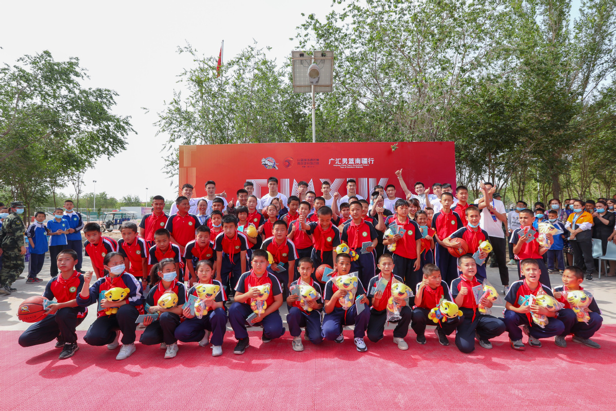 5月27日,新疆广汇职业篮球俱乐部曾令旭、阿不都沙拉木以及全体新疆广汇青年队队员来到兵团第三师图木舒克市,为这片沙漠绿洲带来一场篮球盛宴。