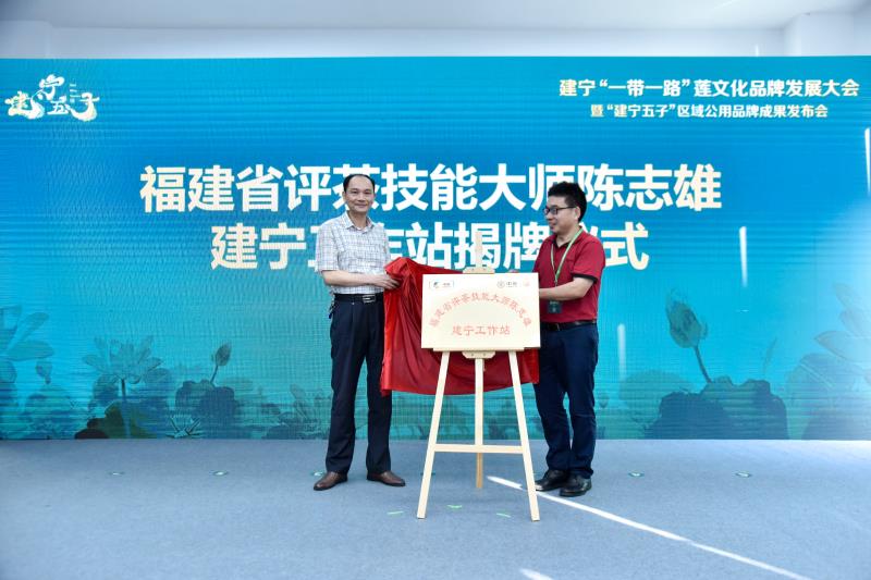 会上,福建省评茶技能大师陈志雄建宁工作站举行了揭牌仪式。(供图)