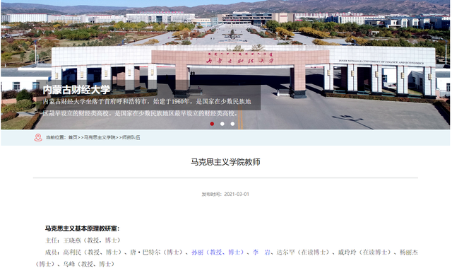9月18日,潇湘晨报记者在内蒙古财经大学官网查询发现,马克思主义基本原理教研室成员中有乌某(教授、博士)。