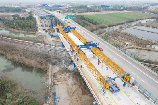 “芜合高速上跨淮南铁路立交改扩建工程位于芜湖北互通内,与淮南铁路交叉,既有 G5011 芜合高速与淮南铁路立体交叉工程为沈家巷铁路立交桥,跨径桥梁边缘到淮南铁路中心线最小距离仅为5.1米。”项目经理张赫介绍,现有桥孔及纵面不能满足专业化要求,需拆除老桥,新建桥梁,将原有双向4车道拓宽改造为双向8车道。